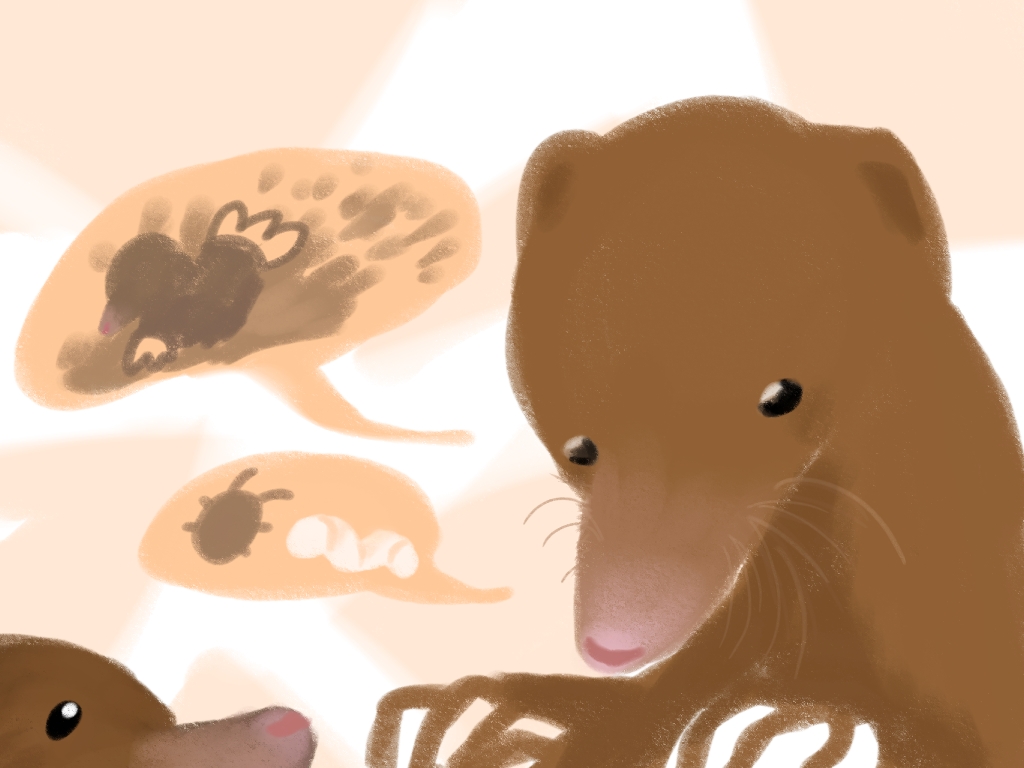 작은 두더지의 제안에 작은 쥐가 쪼르르 도망가려다가 멈췄습니다.